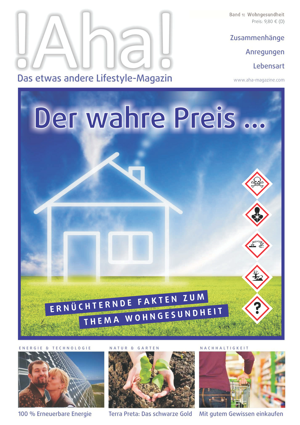 !Aha! Lifestyle-Ratgeber Wer sich für eine gesunde und nachhaltige Lebensweise interessiert, bieten wir zur Unterstützung und Orientierung den !Aha! Lifestyle-Ratgeber. Alle im Ratgeber und in den Anzeigenflächen vom Magazin vorgestellten Produkte, Literatur, Unternehmen, Verbände, Organisationen, uvm. sind handverlesen und einer gesunden und nachhaltigen Lebensweise dienlich. Sie wurden von uns und unseren Ressourcen gewissenhaft geprüft und sind damit zuverlässige Empfehlungen der Redaktion!