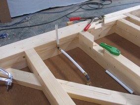 aus Hartholz verbunden. Damit wird auch bei den fertigen Wand-Elementen